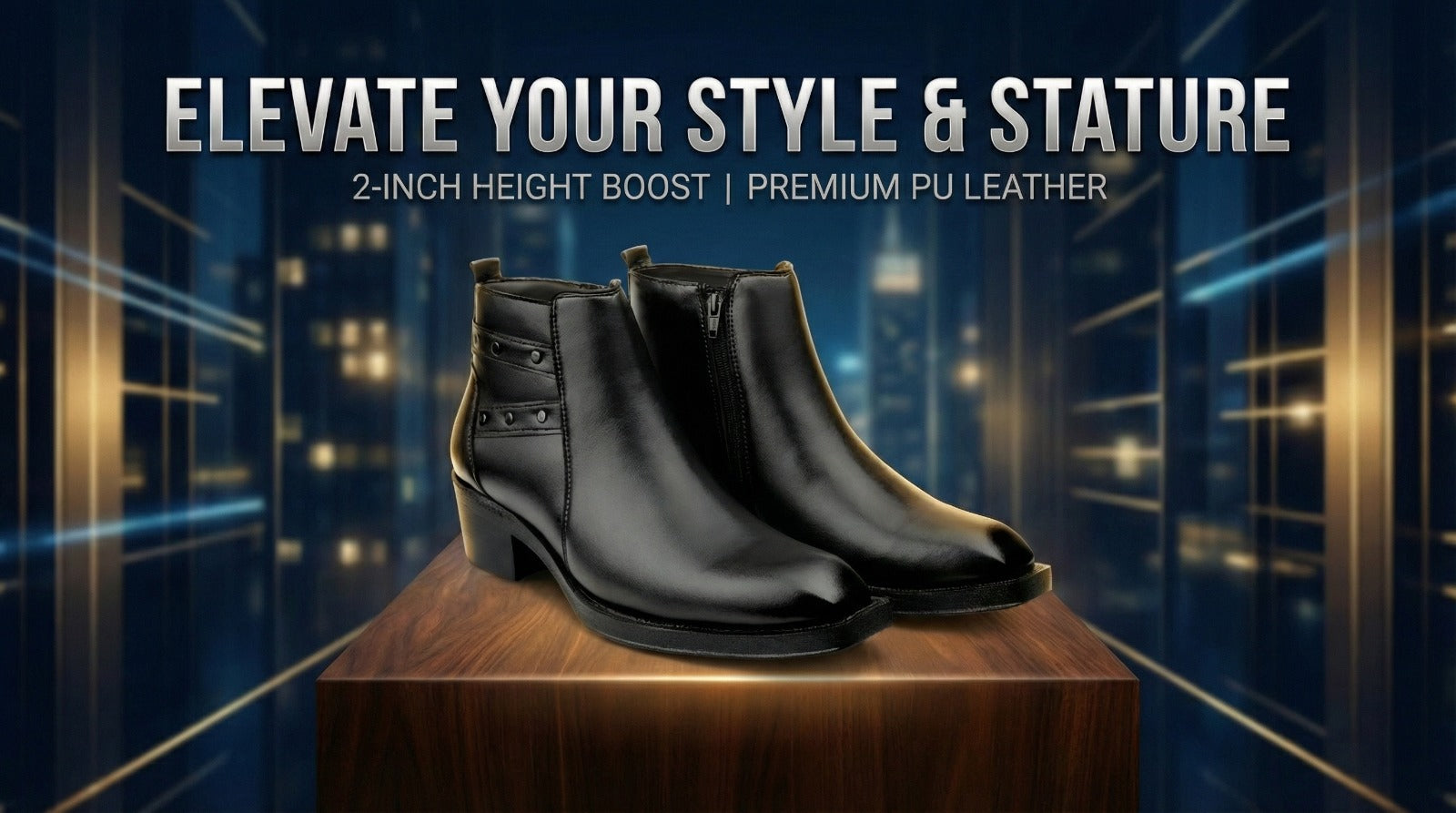Men’s Elevated Style Boots – 2 Inches Rise, Premium Finish