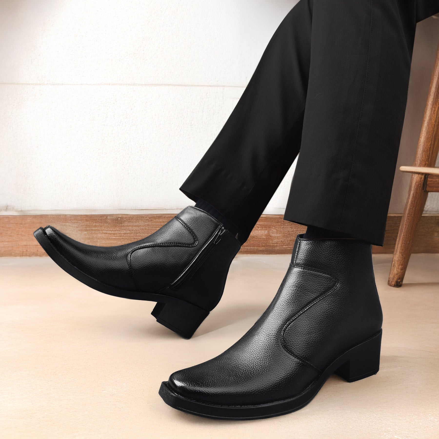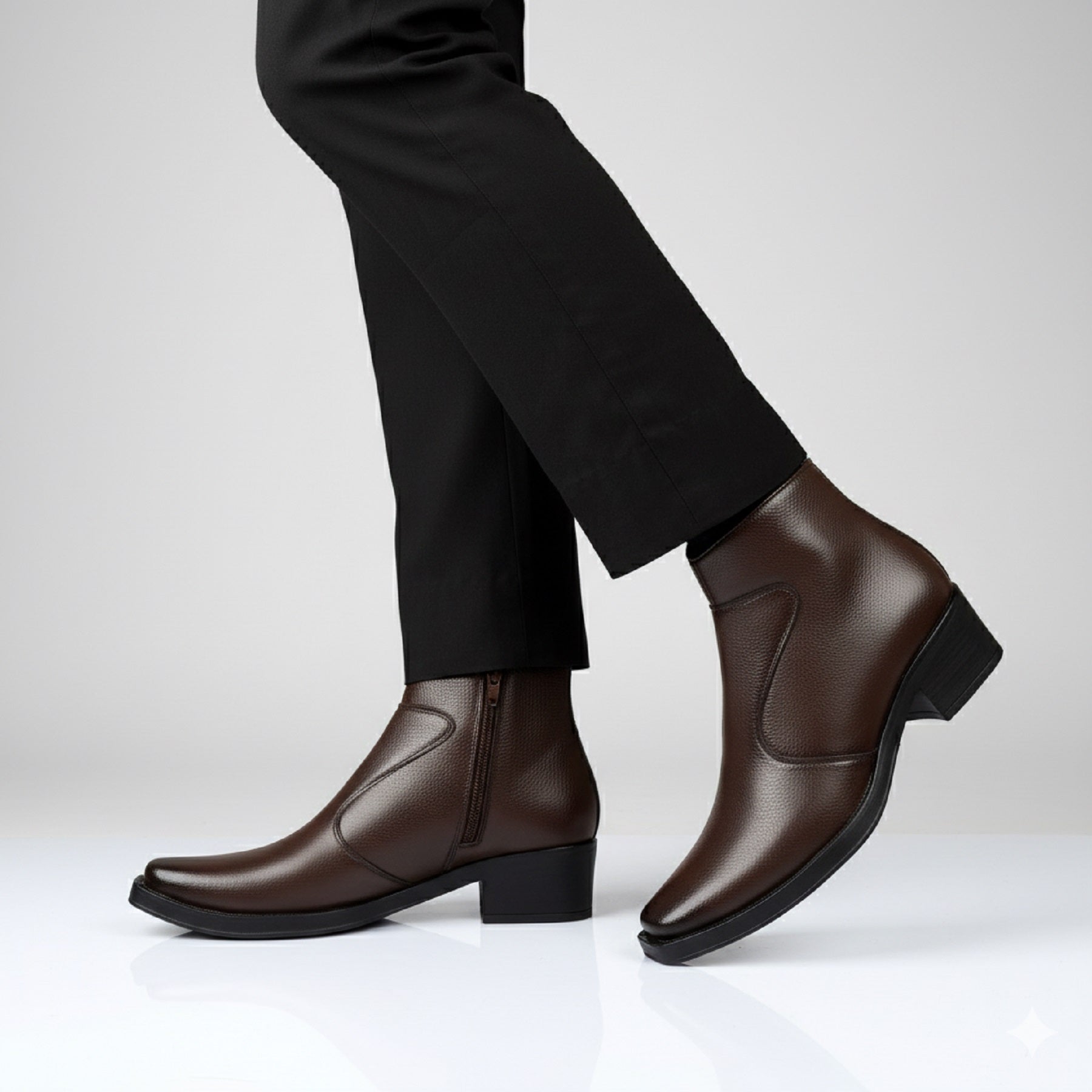 Step up your style and confidence with our Men’s 2-Inch Hidden Heel Height Increasing Boots. Designed to discreetly add 2 inches to your height, these boots offer a sleek and modern appearance without compromising on comfort. Crafted with high-quality materials, they provide durability and support for all-day wear. Whether you're attending a formal event or a casual outing, these boots are the perfect choice to enhance your stature and elevate your look.
