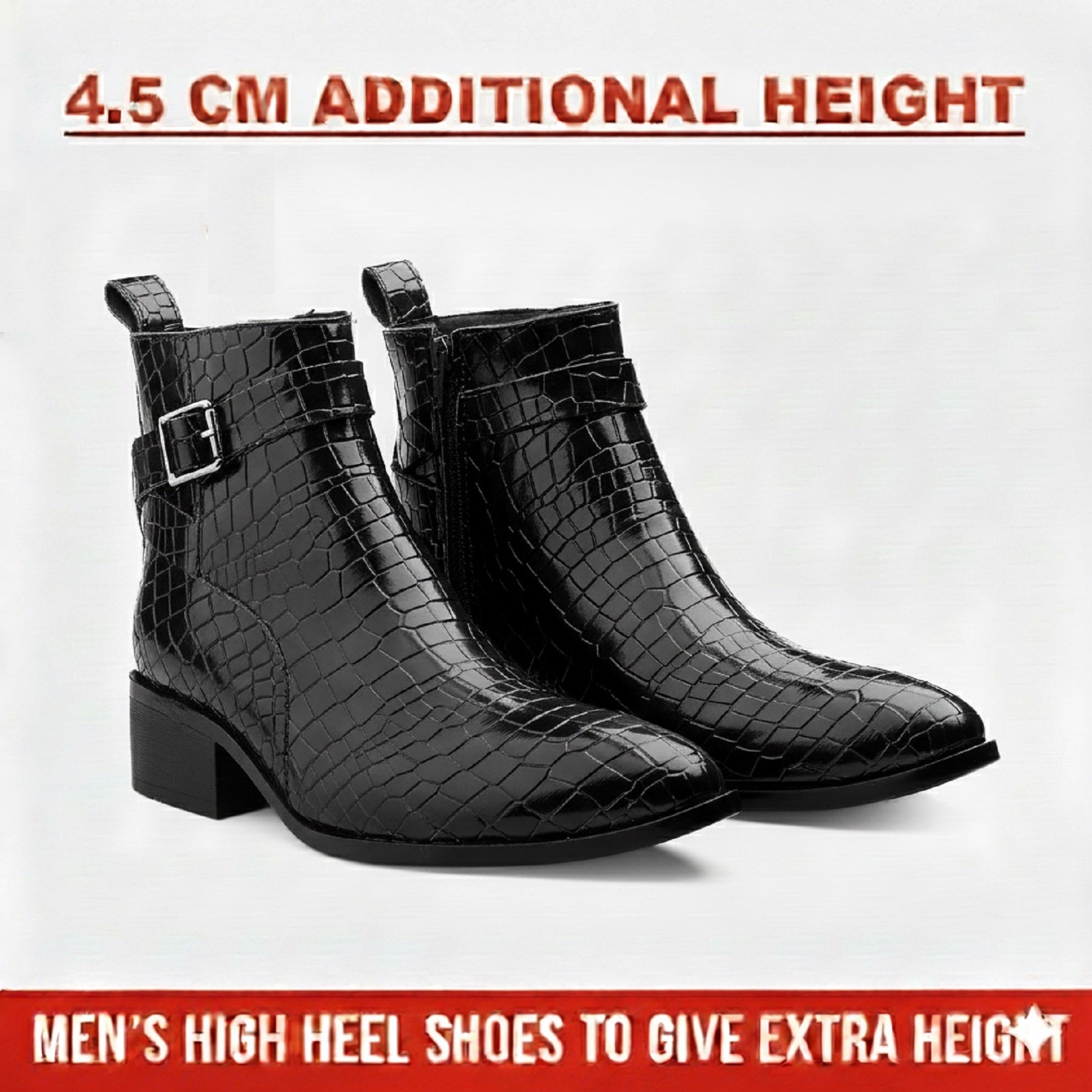Step up your style with Men’s Elevation Plus Boots, designed to deliver a discreet 4.5 cm height boost without compromising comfort or appearance. The cleverly built-in elevation sole is fully concealed, giving you a natural look and confident posture.