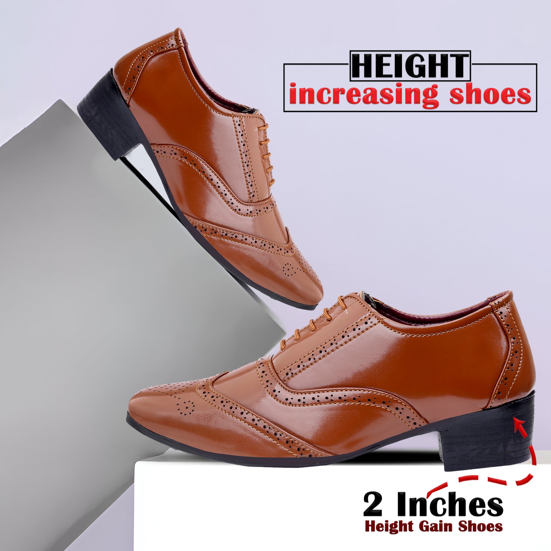 - Material : You'll Love This Light Weight Height Increasing Formal Oxford Brogue Shoe It Features A Faux Leather Upper, Synthetic Leather Inner, Lace-up On Style For Easy Fit, Soft Lining, Cushiony Memory Foam Insole For Comfort And Support, And A Non-Marking Outsole. Manmade Materials.