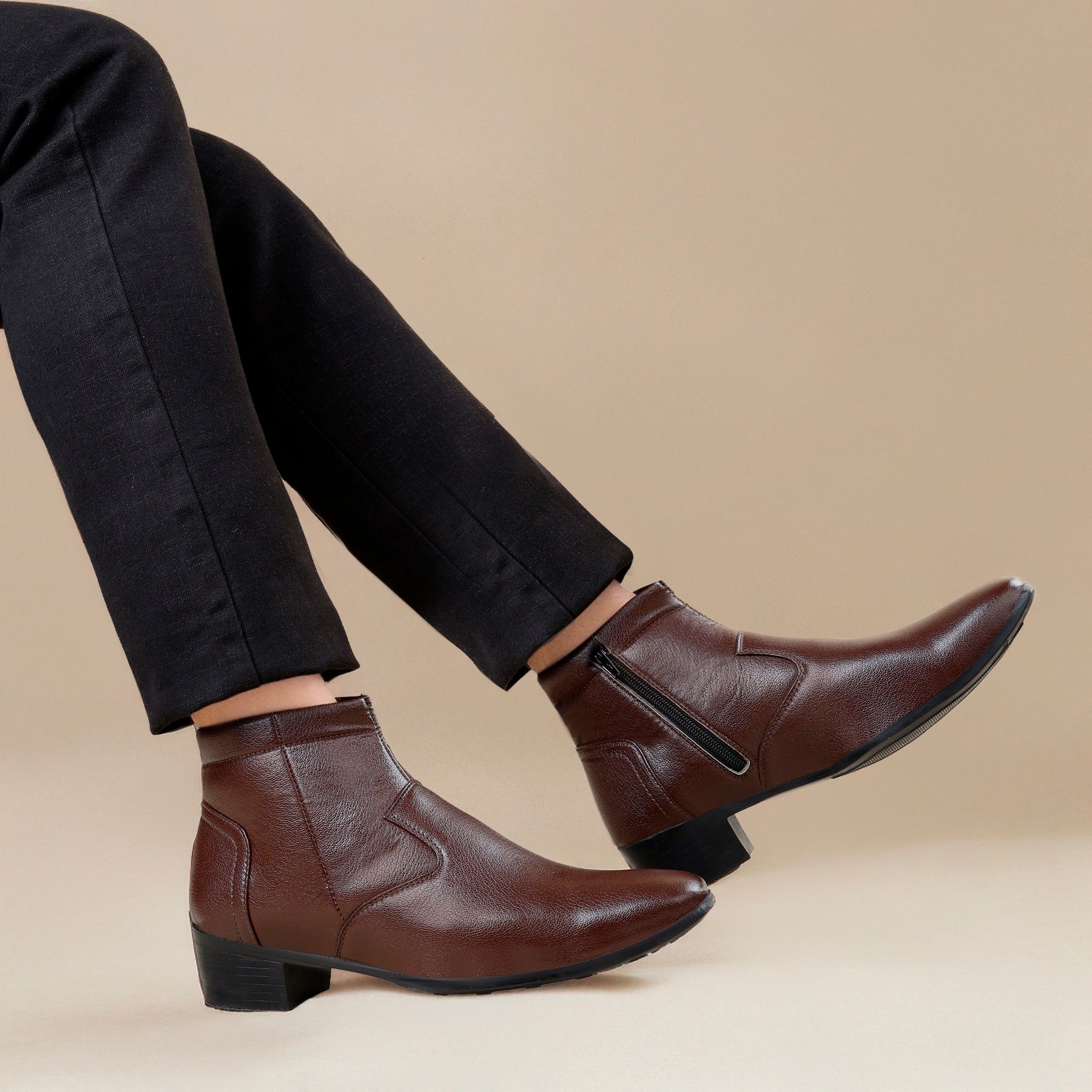 Step up your style and confidence with Bxxy’s 2-Inch Height Increasing Formal Ankle Zipper Boots.