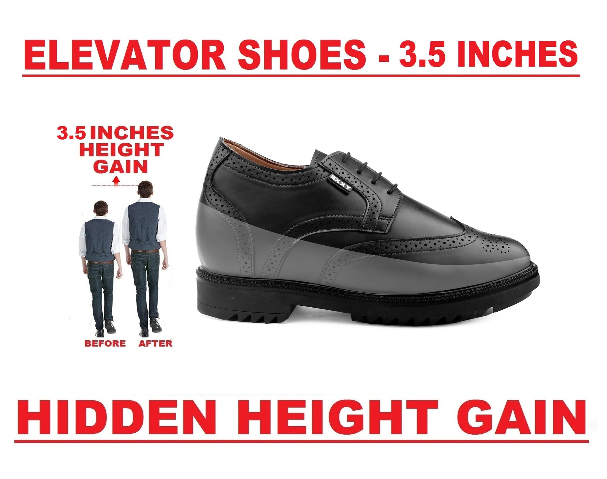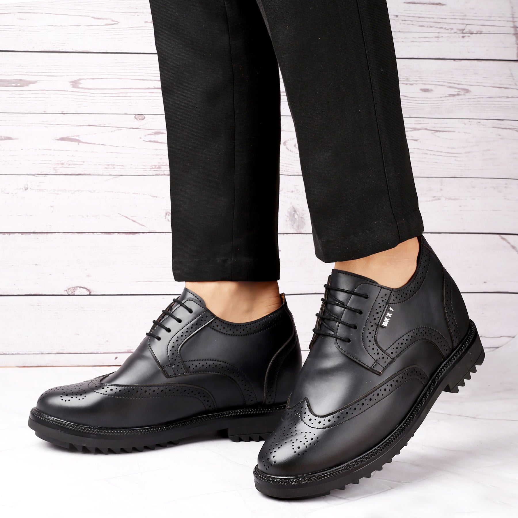 Men's 3.5 Inch Hidden Height Increasing Vegan Leather Brogue Shoes